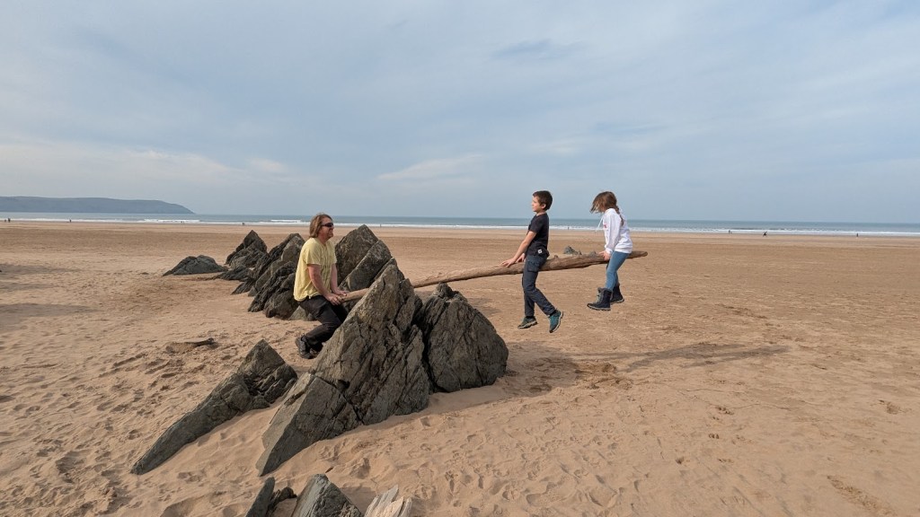 Running free on long sandy beaches and feeling the sand on our feet and hands was a highlight. At Woolacombe beach, we ate pasties and ice-cream whilst creating our own park from driftwood.