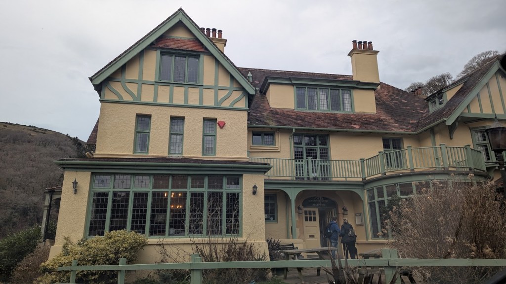 We explored a woodland walk alongside a river to the rocky beach at Heddon National Trust, where the children climbed trees and our pup explored all the interesting smells. We started with lunch at The Hunters Inn, a beautiful quirky building with great food and an extensive dog menu. Ella, our pup, enjoyed a fine doggy roast. We then thought an icecream would go down well whilst walking, but sadly the National Trust hut only sold doggy icecreams out of season. They did have a pile of cakes to choose from. We selected some to enjoy on the beach.
